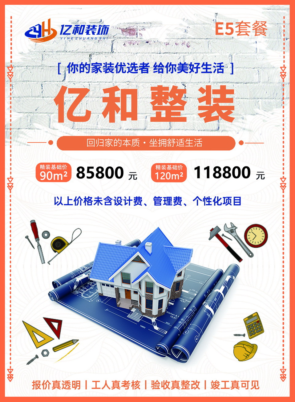 亿和装饰 E5整装套餐全新亮相!E5 套餐以高性价比为核心,精选优质主材,90㎡仅 85800 元起